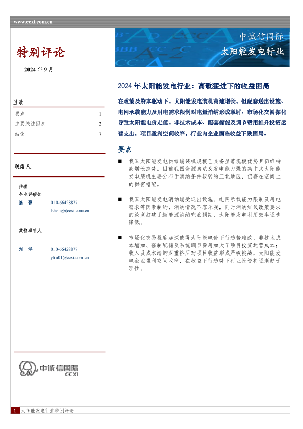 【中诚信国际】【2024】2024年太阳能发电行业:高歌猛进下的收益困局-9页