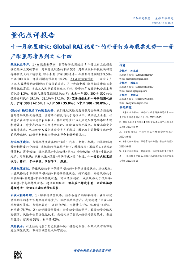 【国盛证券】【20221026】资产配置思考系列之三十四:十一月配置建议,Global RAI视角下的外资行为与股票走势-15页