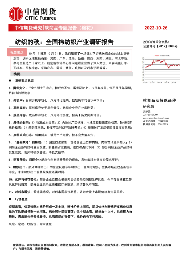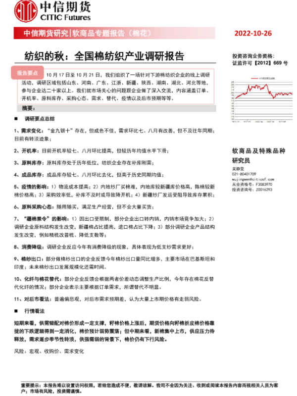 【中信期货】【20221026】软商品专题报告(棉花):纺织的秋,全国棉纺织产业调研报告-16页