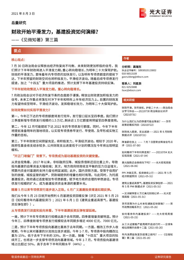 【光大证券】【20210803】《见微知著》第三篇:财政开始平滑发力,基建投资如何演绎?-10页