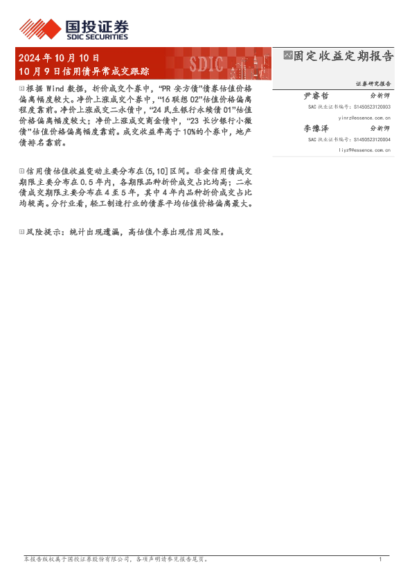 【国投证券】【20241010】10月9日信用债异常成交跟踪-10页
