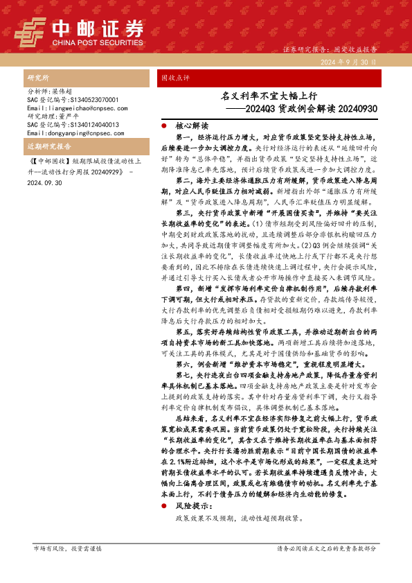 【中邮证券】【20240930】2024Q3货政例会解读:名义利率不宜大幅上行-10页