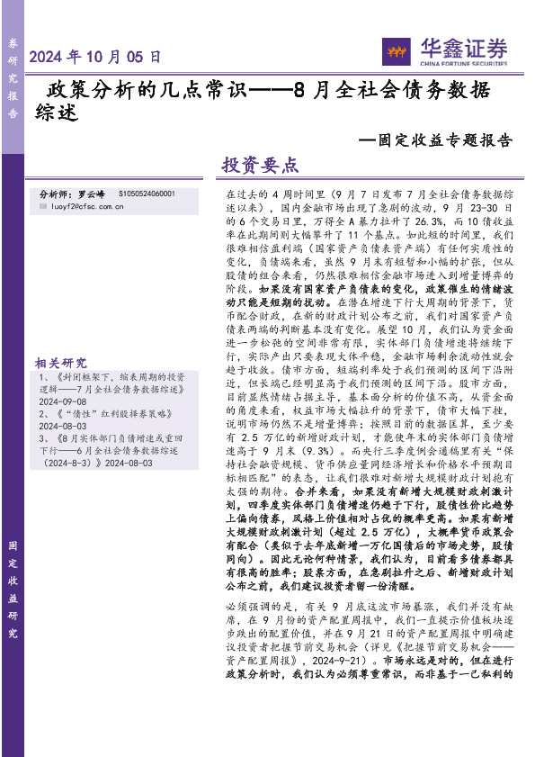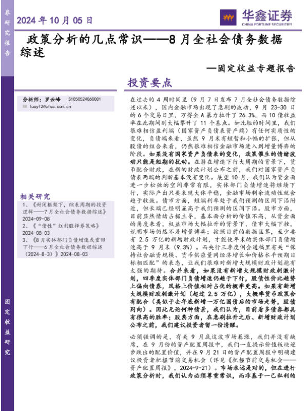 【华鑫证券】【20241005】8月全社会债务数据综述:政策分析的几点常识-15页