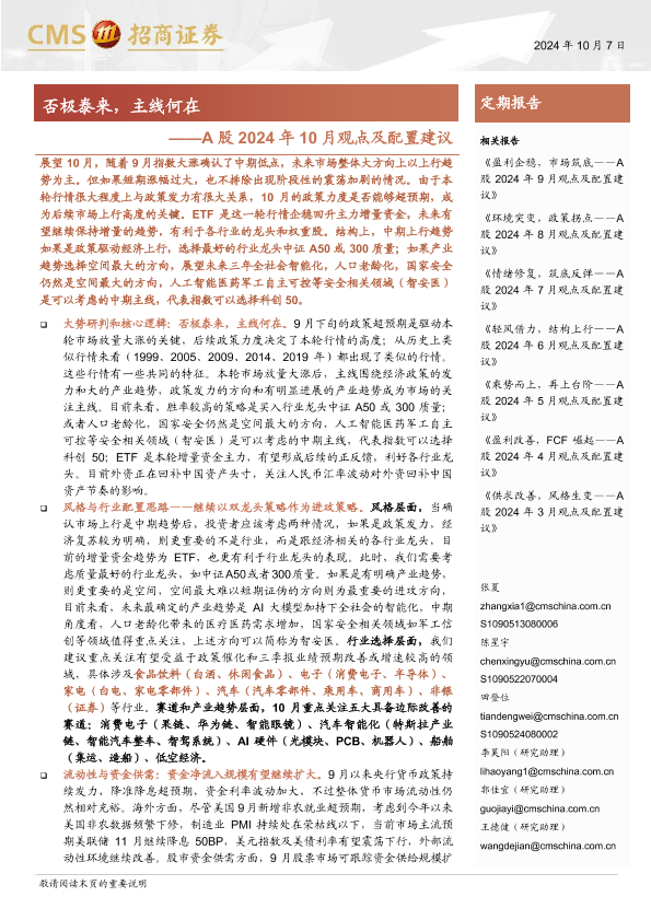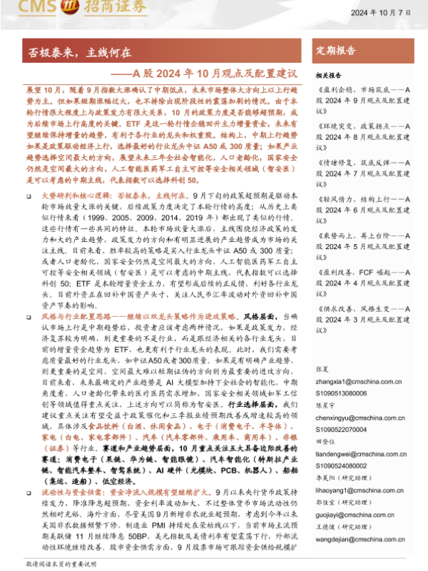 【海通证券】【20241007】A股2024年10月观点及配置建议:否极泰来,主线何在-80页