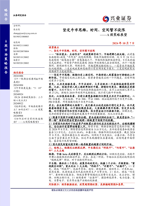 【兴业证券】【20241007】A股策略展望:坚定牛市思维,时间、空间暂不设限-10页