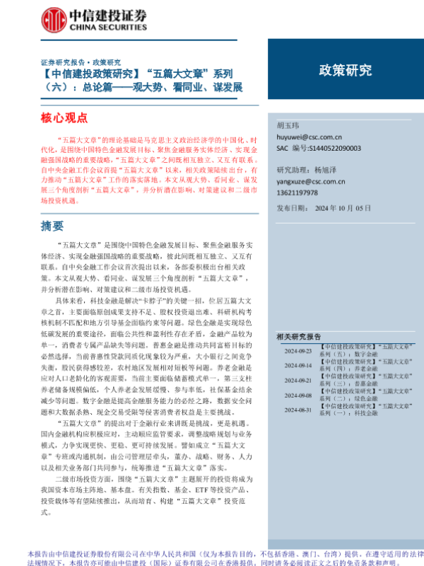 【中信建投证券】【20241005】【中信建投政策研究】“五篇大文章”系列(六):总论篇,观大势、看同业、谋发展-29页