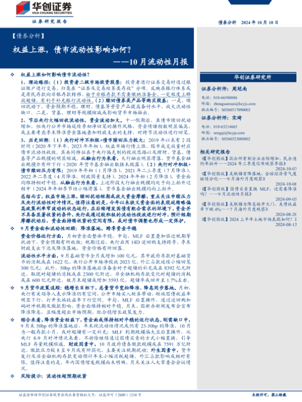 【华创证券】【20241010】【债券分析】10月流动性月报:权益上涨,债市流动性影响如何?-22页