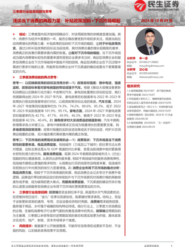 【民生证券】【20241009】三季度行业信息回顾与思考:浅谈当下消费的两股力量,补贴政策加码+下沉市场崛起-24页