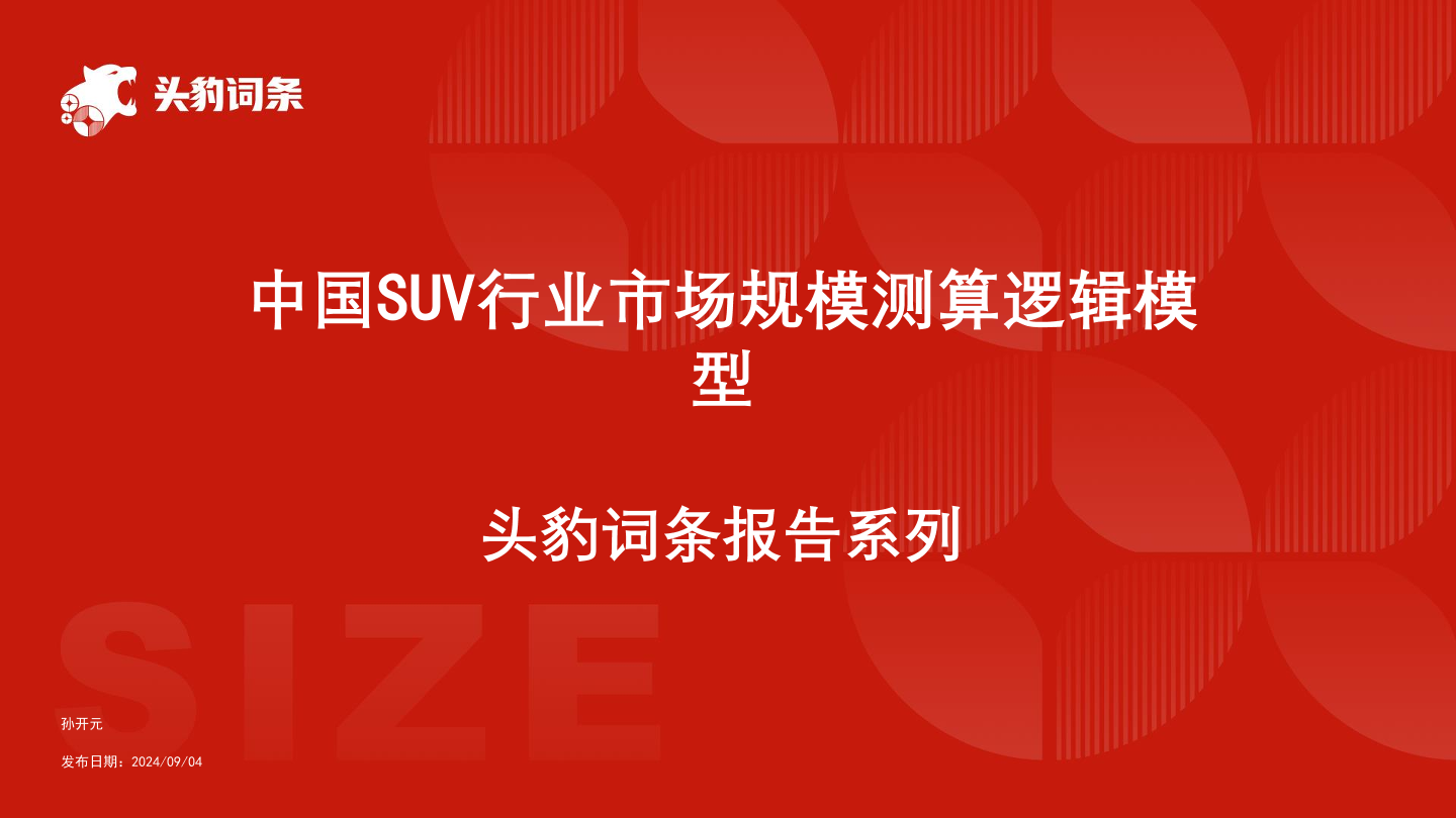 【头豹研究院】【20240904】中国SUV行业市场规模测算逻辑模型+头豹词条报告系列-22页