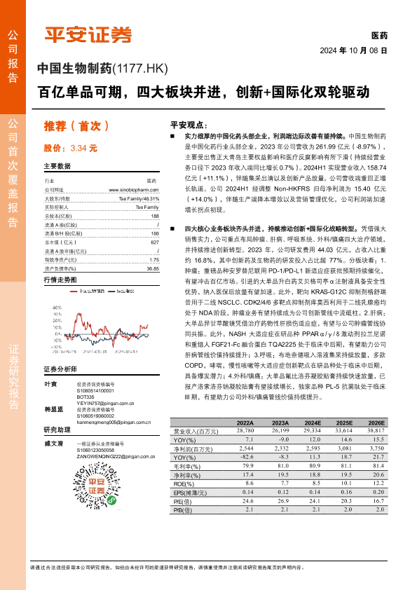 【平安证券】【20241008】中国生物制药(1177.HK)百亿单品可期,四大板块并进,创新+国际化双轮驱动-31页