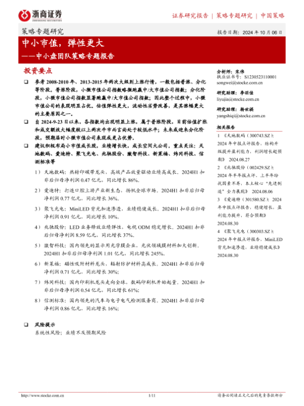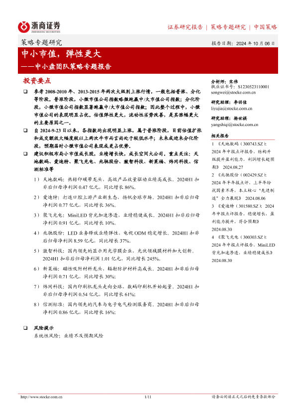 【浙商证券】【20241006】中小盘团队策略专题报告:中小市值,弹性更大-11页