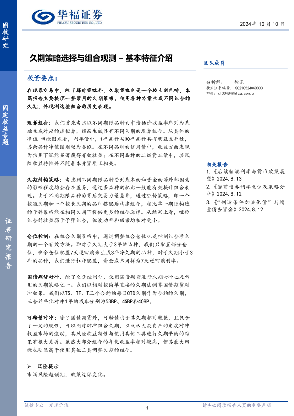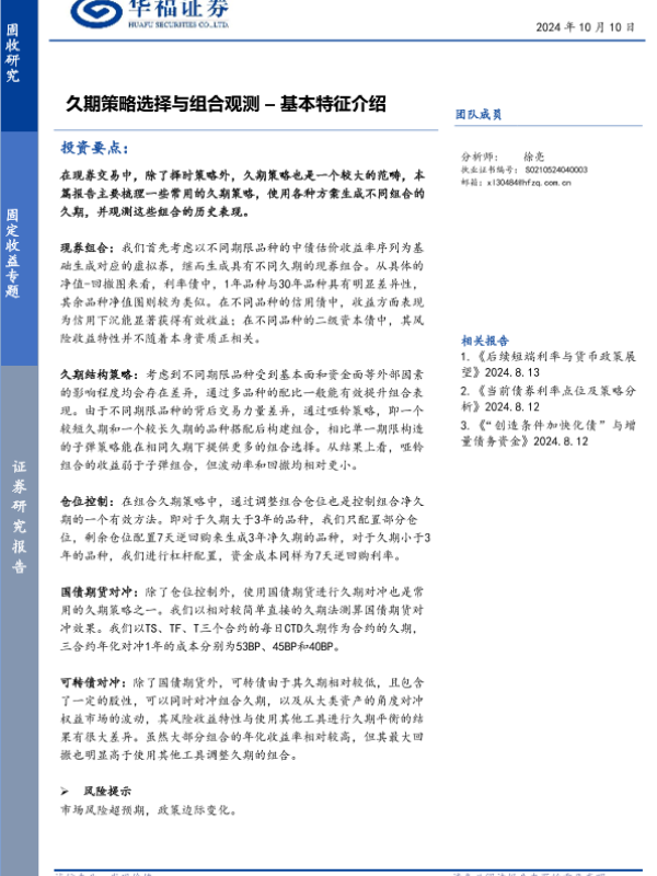 【华福证券】【20241010】久期策略选择与组合观测:基本特征介绍-16页