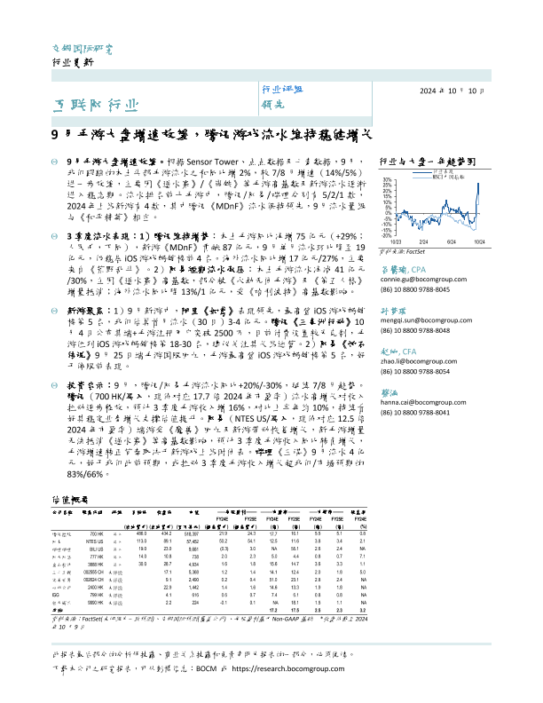 【交银国际】【20241010】9月手游大盘增速放缓,腾讯游戏流水维持稳健增长-12页