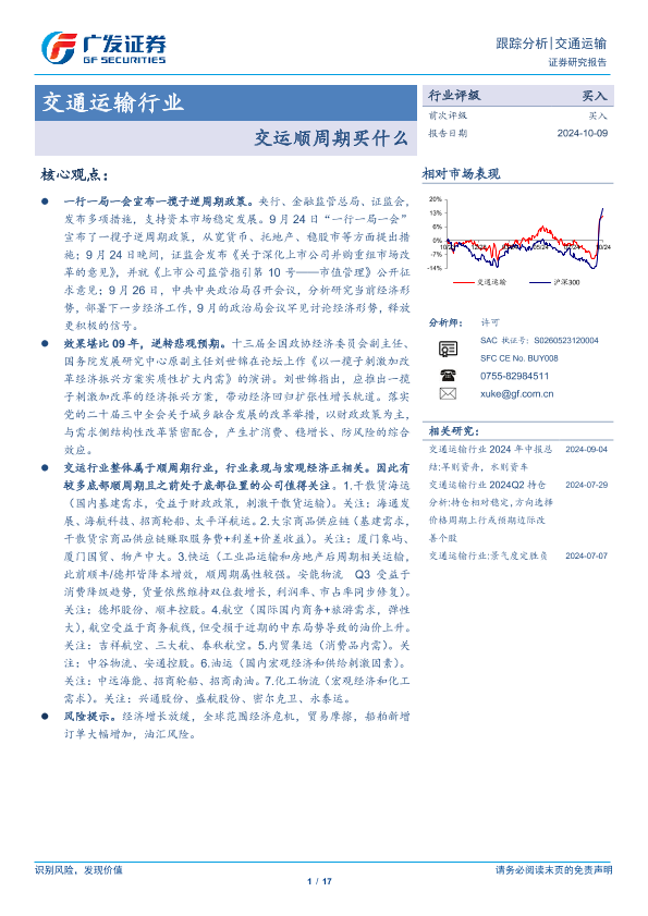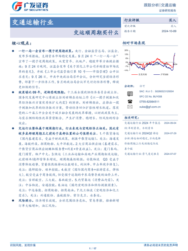 【广发证券】【20241009】交通运输行业跟踪分析:交运顺周期买什么-17页