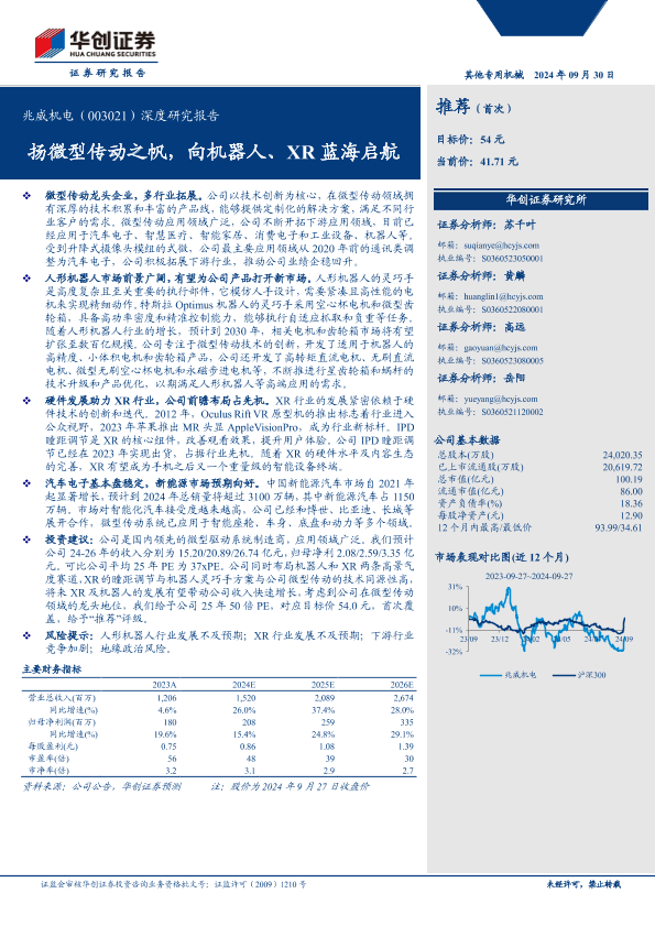 【华创证券】【20240930】兆威机电(003021)深度研究报告:扬微型传动之帆,向机器人、XR蓝海启航-32页