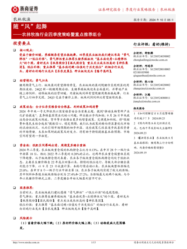 【浙商证券】【20241005】农林牧渔行业四季度策略暨重点推荐组合:随“风”起舞-13页