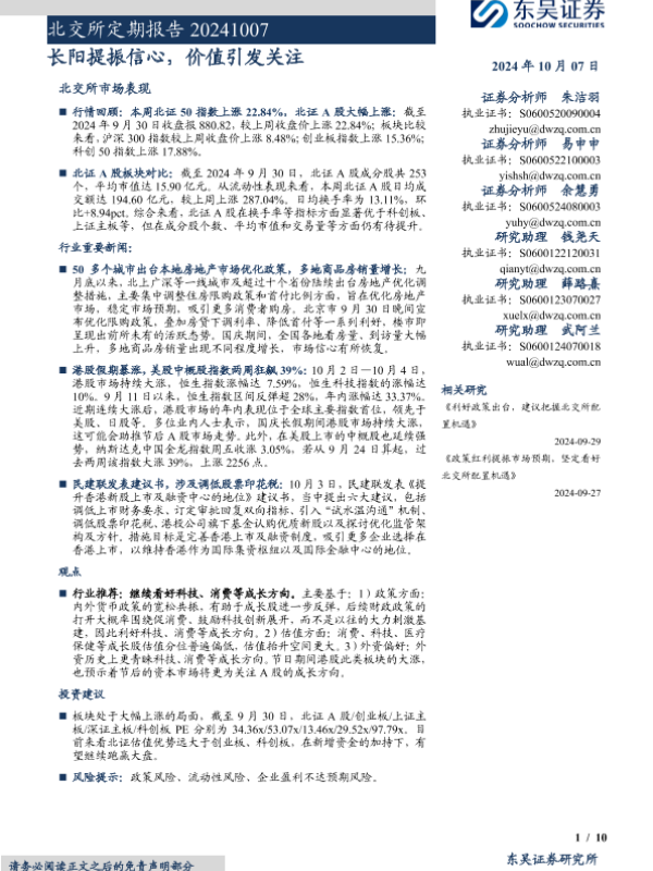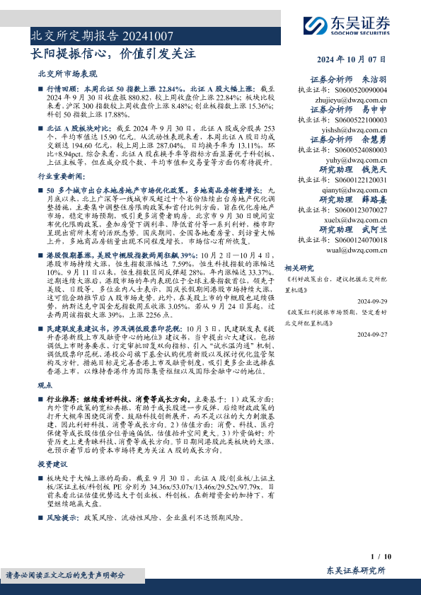 【东吴证券】【20241007】北交所定期报告:长阳提振信心,价值引发关注-10页