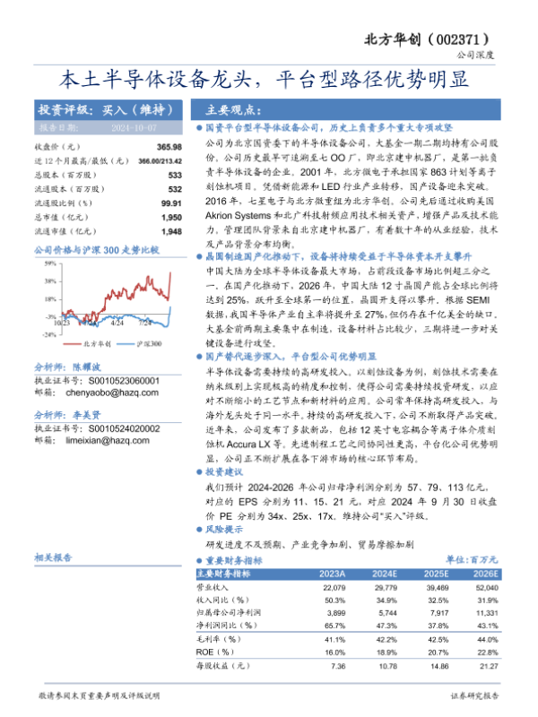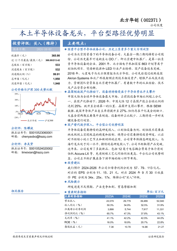 【华安证券】【20241007】北方华创(002371)本土半导体设备龙头,平台型路径优势明显-21页