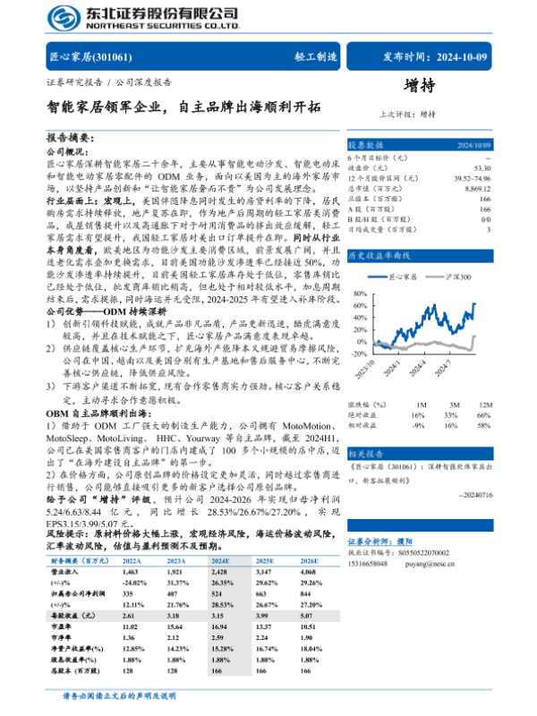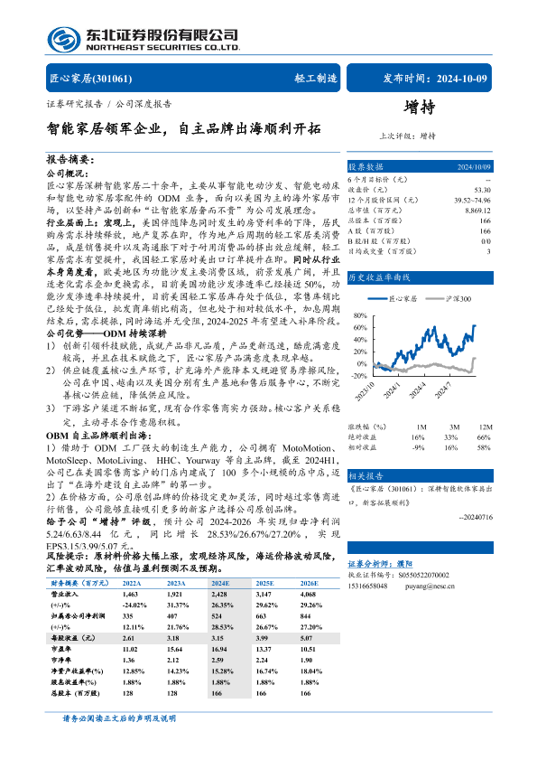 【东北证券】【20241009】匠心家居(301061)智能家居领军企业,自主品牌出海顺利开拓-30页