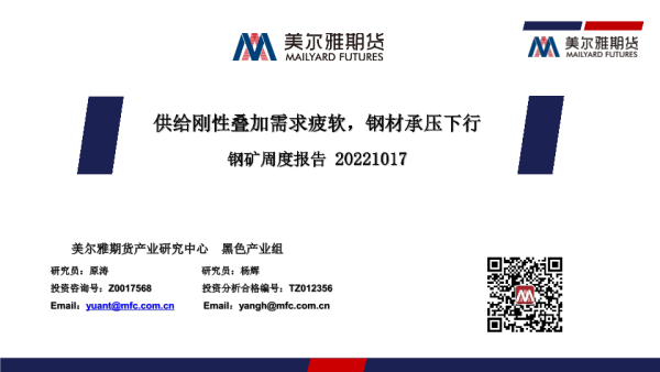 【美尔雅期货】【20221017】钢矿周度报告:供给刚性叠加需求疲软,钢材承压下行-30页