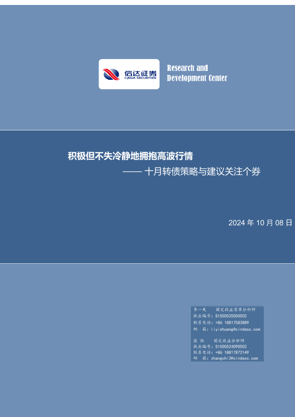 【信达证券】【20241008】积极但不失冷静地拥抱高波行情——十月转债策略与建议关注个券-17页