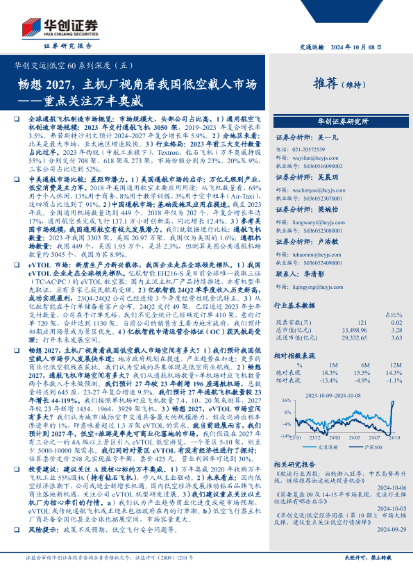 【华创证券】【20241008】华创交运行业低空60系列深度(五):畅想2027,主机厂视角看我国低空载人市场——重点关注万丰奥威-35页