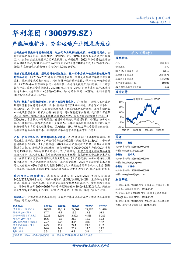 【国盛证券】【20241001】华利集团(300979)产能加速扩张,夯实运动产业链龙头地位-18页