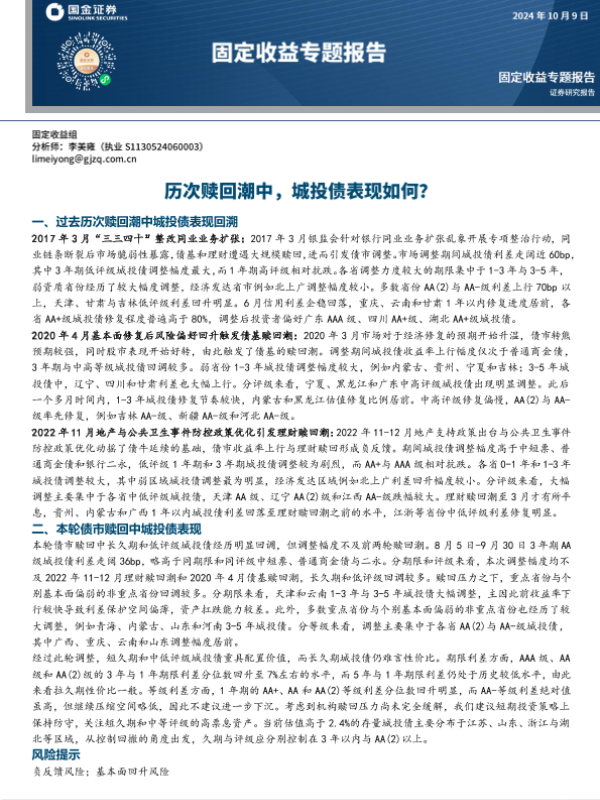 【国金证券】【20241009】固定收益专题报告:历次赎回潮中,城投债表现如何?-15页