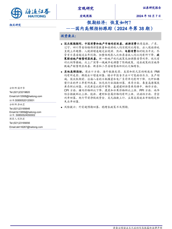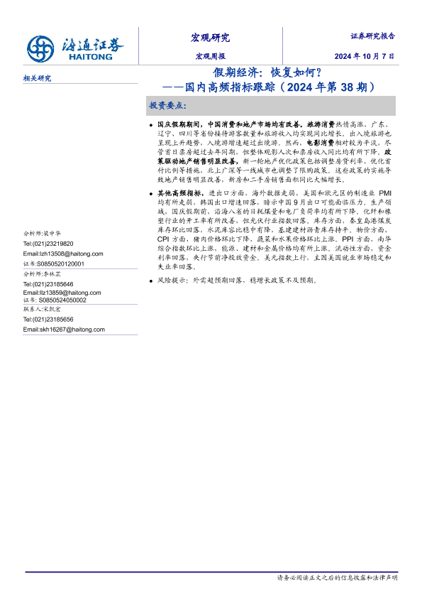 【海通证券】【20241007】国内高频指标跟踪(2024年第38期):假期经济,恢复如何?-11页