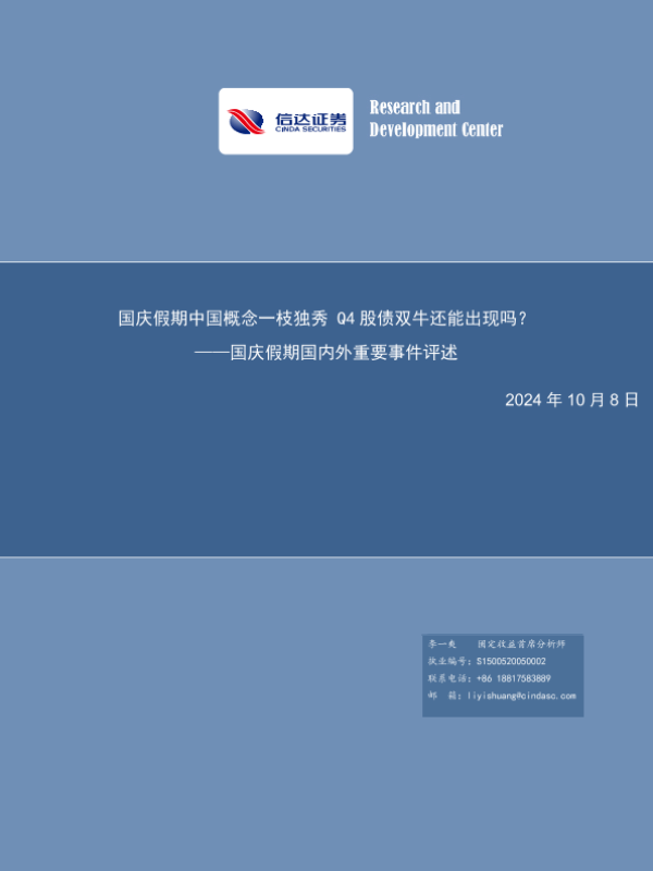 【信达证券】【20241008】国庆假期国内外重要事件评述:国庆假期中国概念一枝独秀,Q4股债双牛还能出现吗?-12页