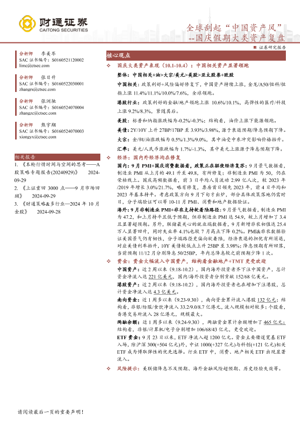 【财通证券】【20241005】国庆假期大类资产复盘:全球刮起“中国资产风”-11页