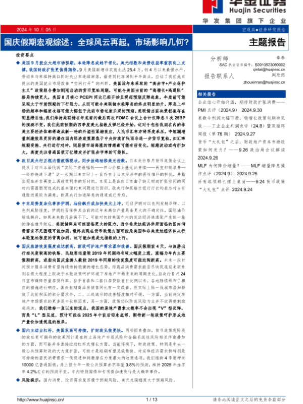 【华金证券】【20241005】国庆假期宏观综述:全球风云再起,市场影响几何?-13页