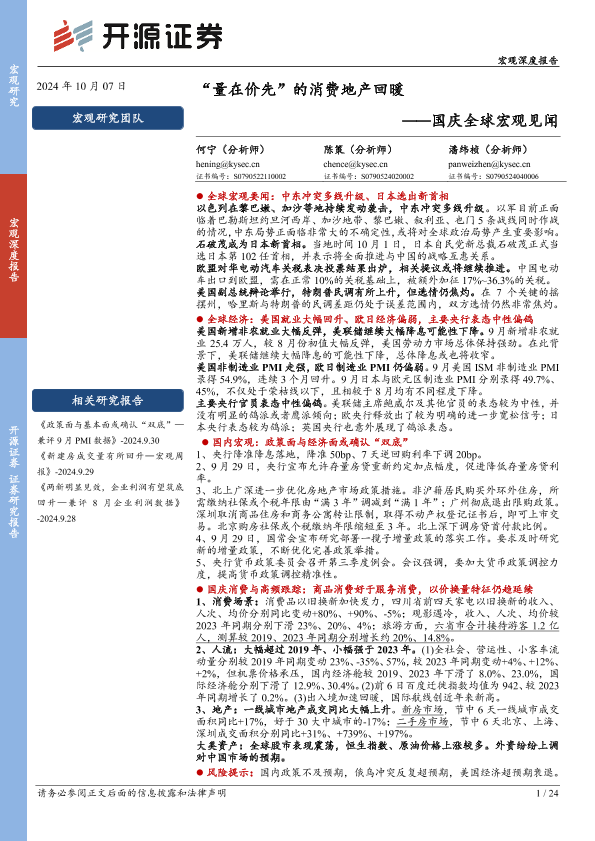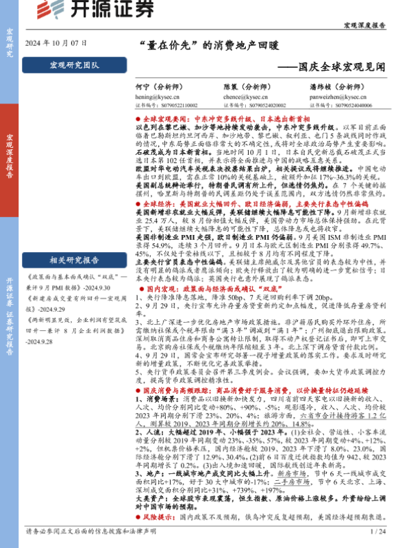 【开源证券】【20241007】国庆全球宏观见闻:“量在价先”的消费地产回暖-24页