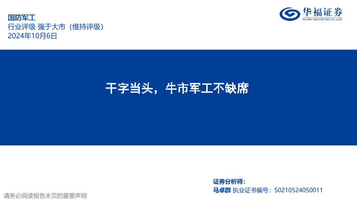 【华福证券】【20241006】国防军工行业专题报告:干字当头,牛市军工不缺席-37页