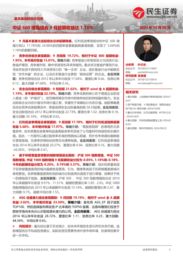 【民生证券】【20241008】基本面选股组合月报:中证500增强组合9月超额收益达1.18%-18页