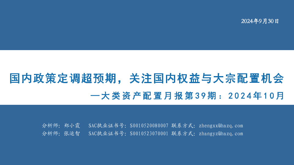 【华安证券】【20240930】大类资产配置月报第39期:2024年10月,国内政策定调超预期,关注国内权益与大宗配置机会-36页