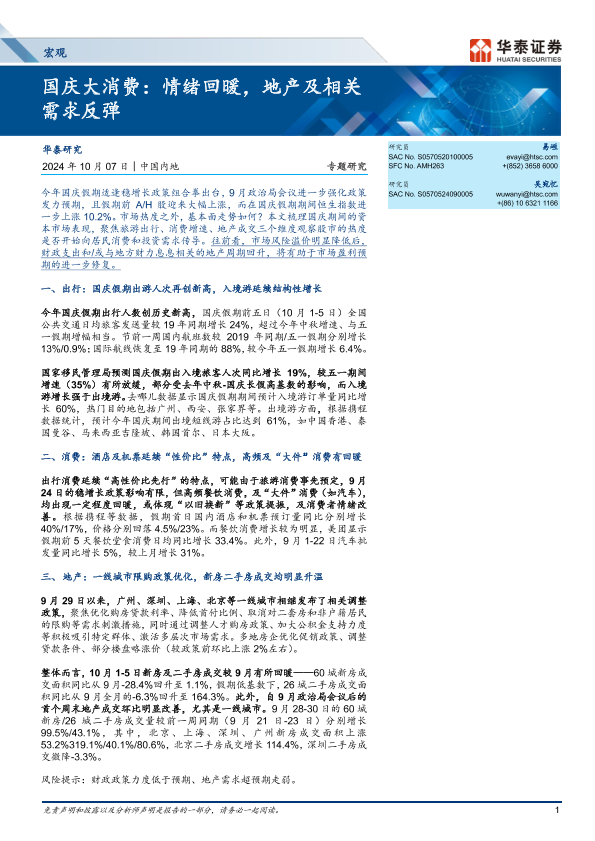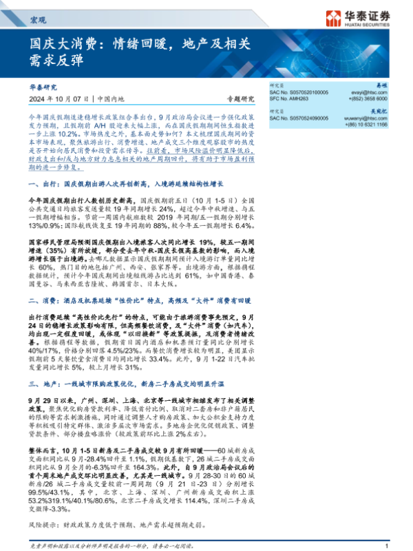 【华泰证券】【20241007】宏观专题研究-国庆大消费:情绪回暖,地产及相关需求反弹-13页
