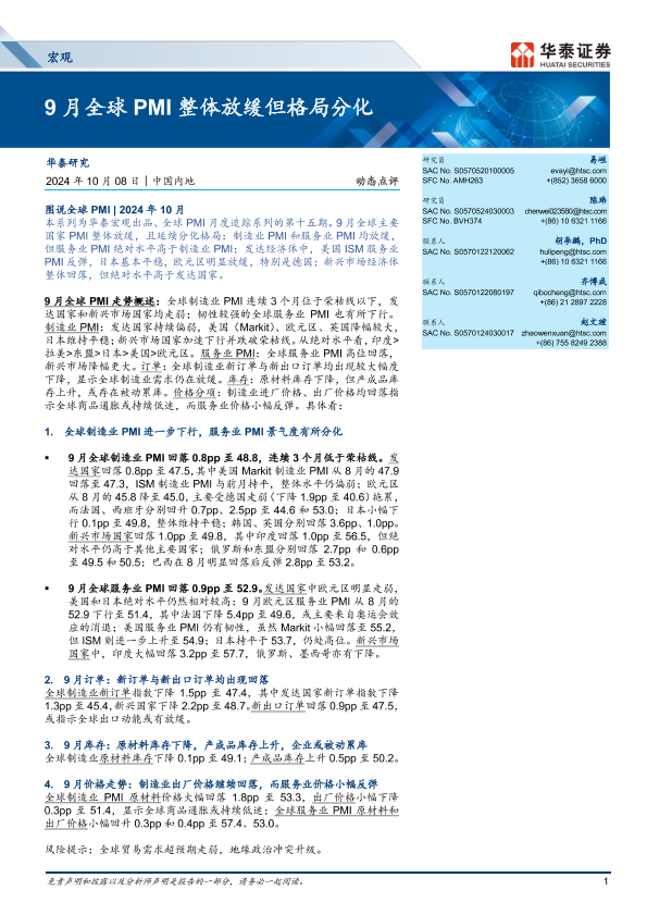 【华泰证券】【20241008】宏观动态点评:9月全球PMI整体放缓但格局分化-18页