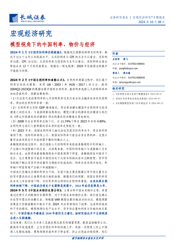 【长城证券】【20241008】宏观经济研究:模型视角下的中国利率、物价与经济-48页