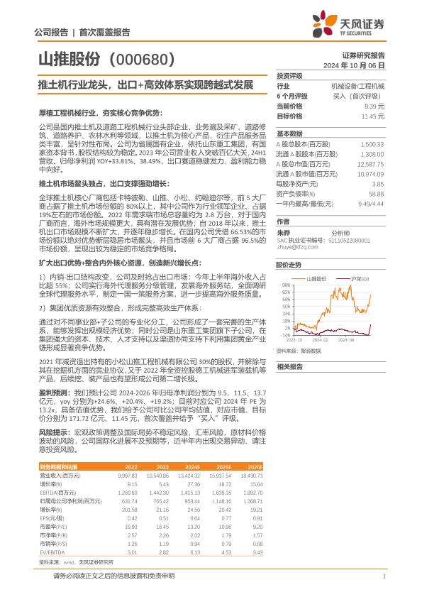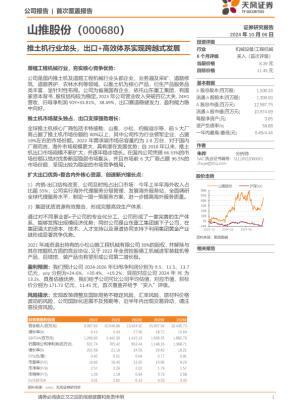 【天风证券】【20241006】山推股份(000680)推土机行业龙头,出口%2b高效体系实现跨越式发展-22页