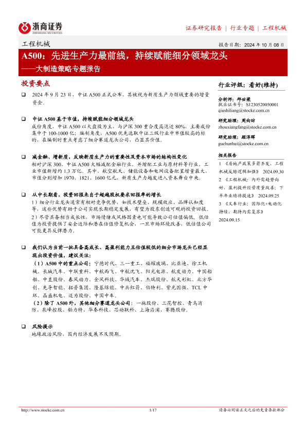 【浙商证券】【20241008】工程机械行业大制造策略专题报告-A500:先进生产力最前线,持续赋能细分领域龙头-17页