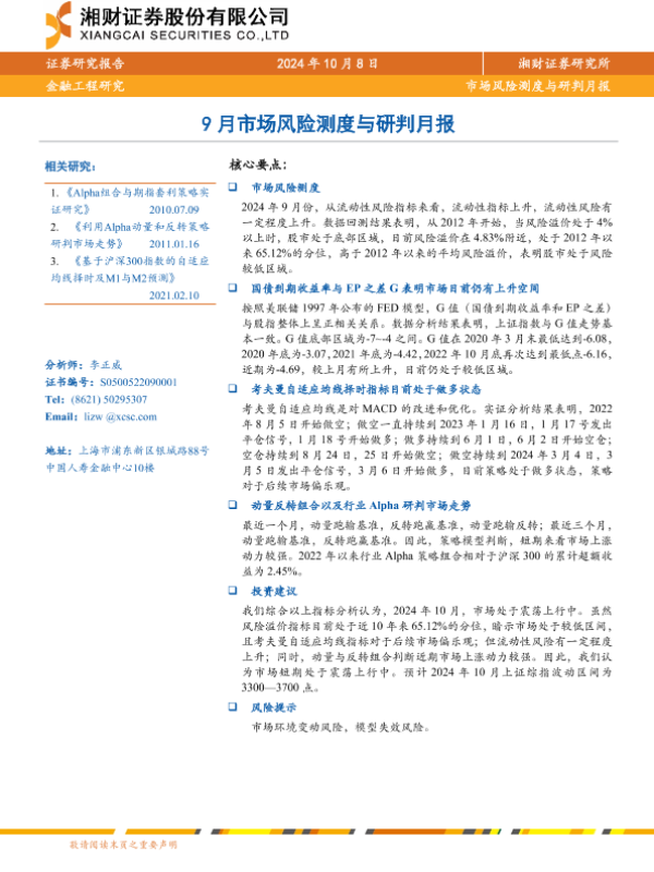 【湘财证券】【20241008】9月市场风险测度与研判月报-14页
