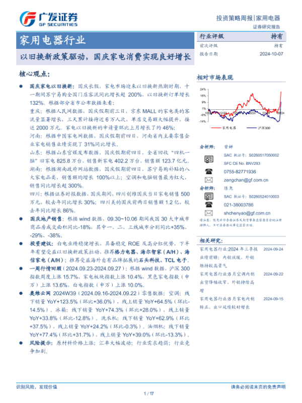 【广发证券】【20241007】家用电器行业:以旧换新政策驱动,国庆家电消费实现良好增长-17页