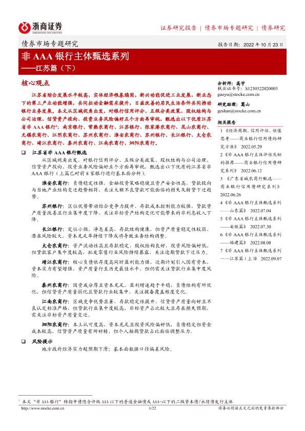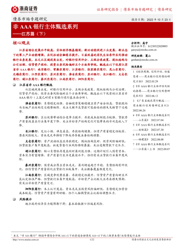 【浙商证券】【20221023】非AAA银行主体甄选系列:江苏篇(下)-22页