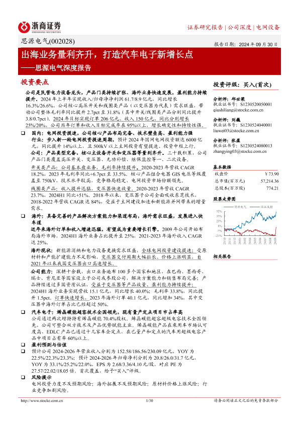 【浙商证券】【20240930】思源电气(002028)深度报告:出海业务量利齐升,打造汽车电子新增长点-30页