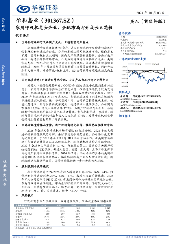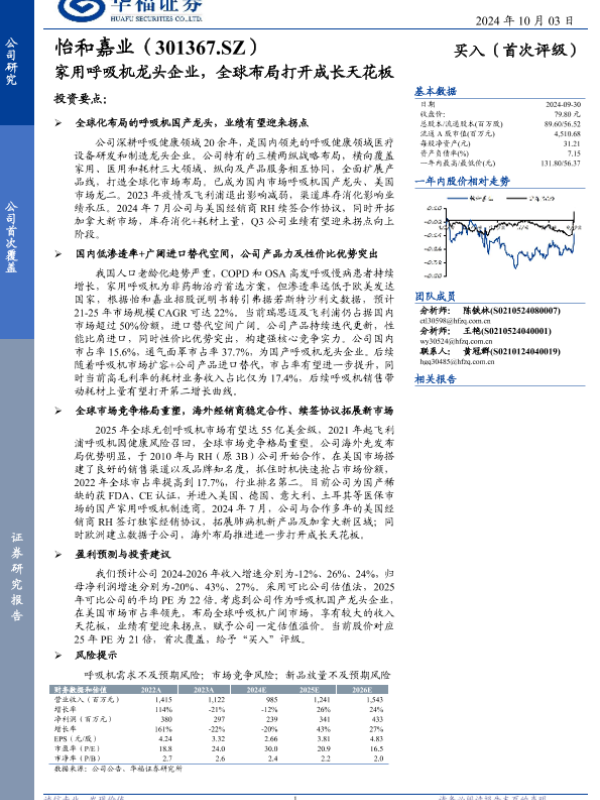 【华福证券】【20241003】怡和嘉业(301367)家用呼吸机龙头企业,全球布局打开成长天花板-21页