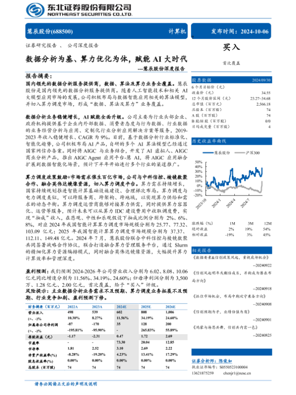 【东北证券】【20241006】慧辰股份(688500)深度报告:数据分析为基、算力优化为体,赋能AI大时代-28页