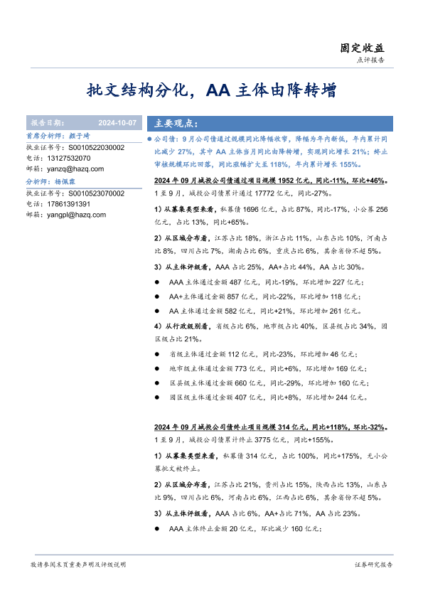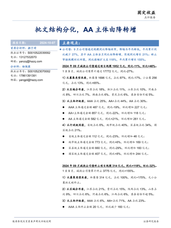 【华安证券】【20241007】批文结构分化,AA主体由降转增-10页