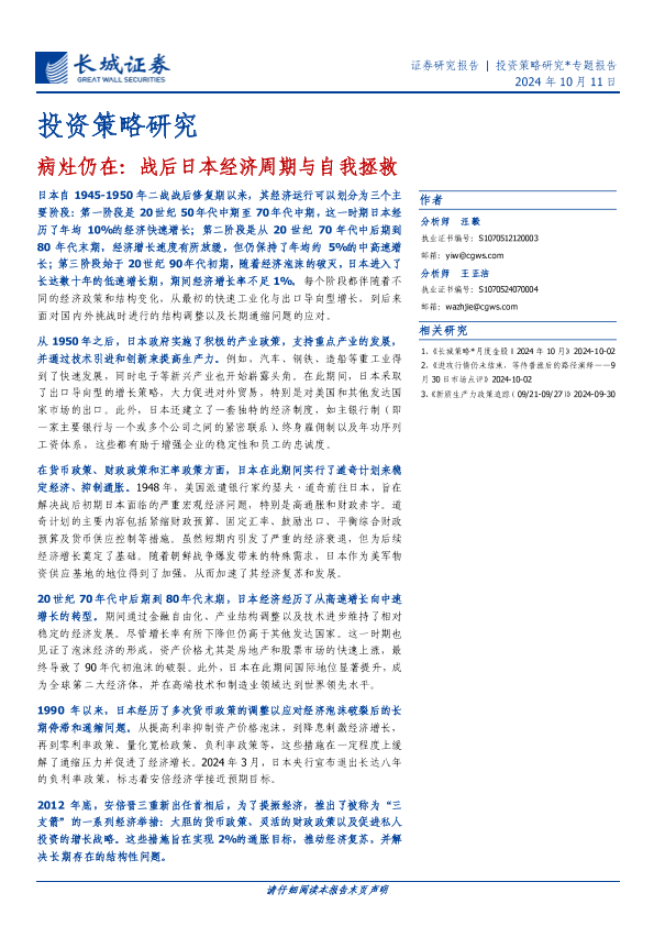 【长城证券】【20241011】病灶仍在:战后日本经济周期与自我拯救-15页