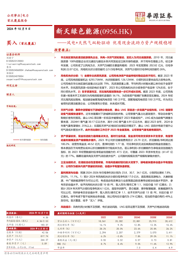 【华源证券】【20241009】新天绿色能源(0956.HK)风电+天然气双轮驱动,优质现金流助力资产规模稳增-28页